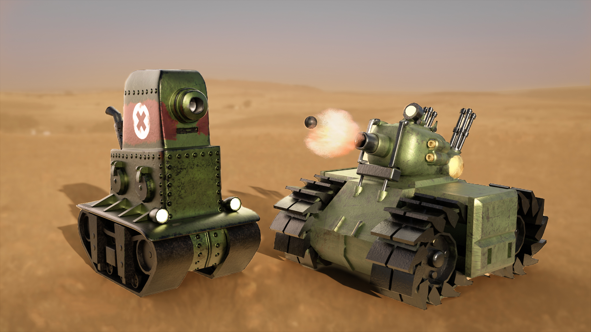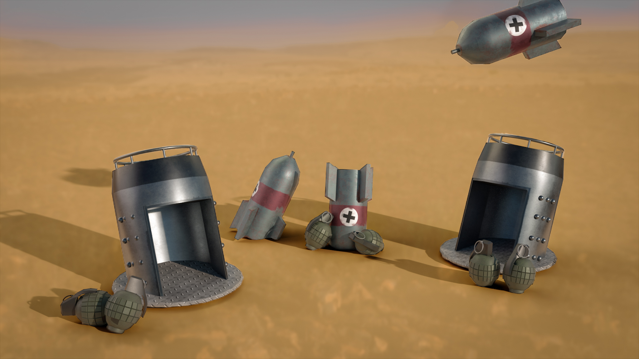 For the animation course, a 3D environment based on a 2D video game had tobe created. In this case, it was based on the Metal Slug game. All the assest were modeled and done in Cinema.